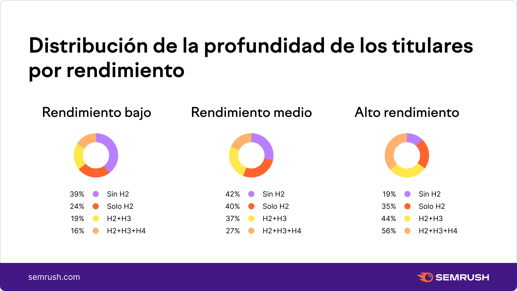 Conclusión: más de la mitad de los artículos con una estructura compleja (h2+h3+h4), tienen un rendimiento alto.