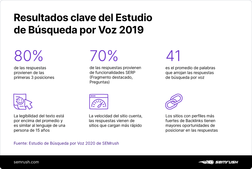 Este estudio de 2020 proporciona información única sobre los algoritmos de búsqueda. Además, explicamos cómo varios asistentes (o dispositivos) de voz ayudan a las empresas a aprovechar el poder de la búsqueda por voz.