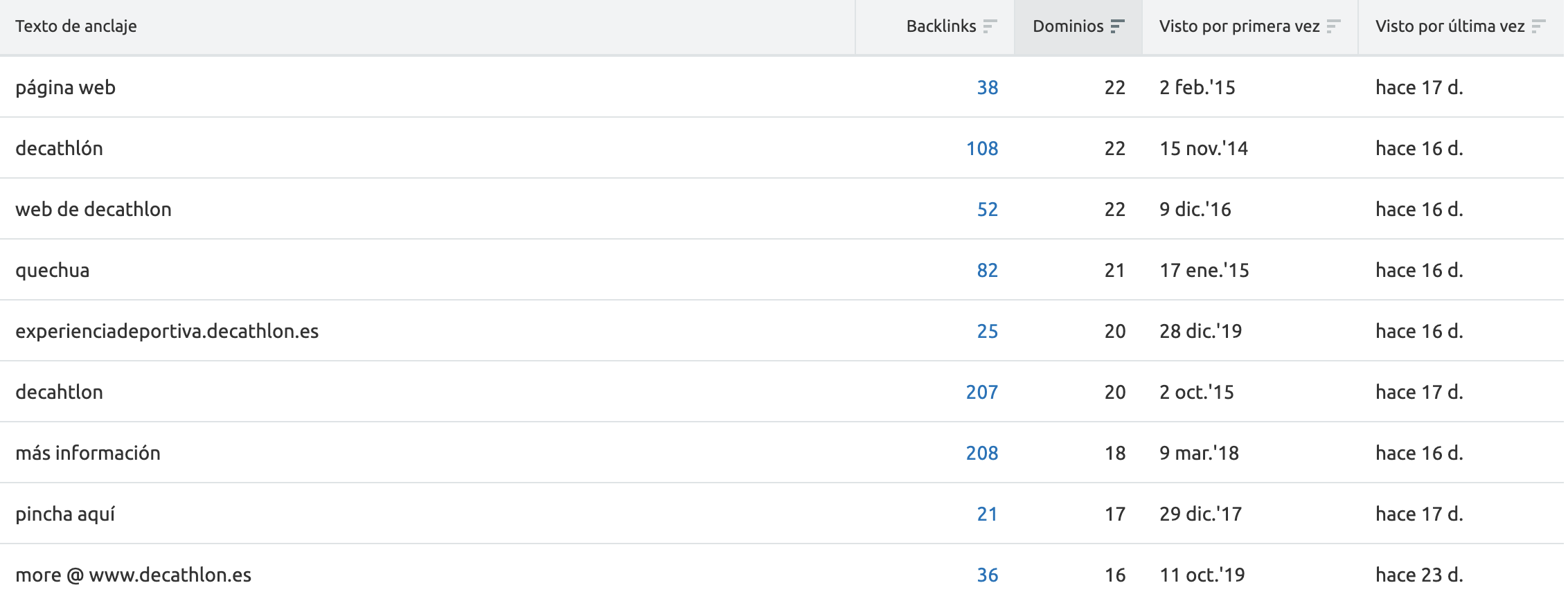 Encontrar los sitios que ya han enlazado a tu dominio, su nivel de autoridad y el anchor text que utilizan