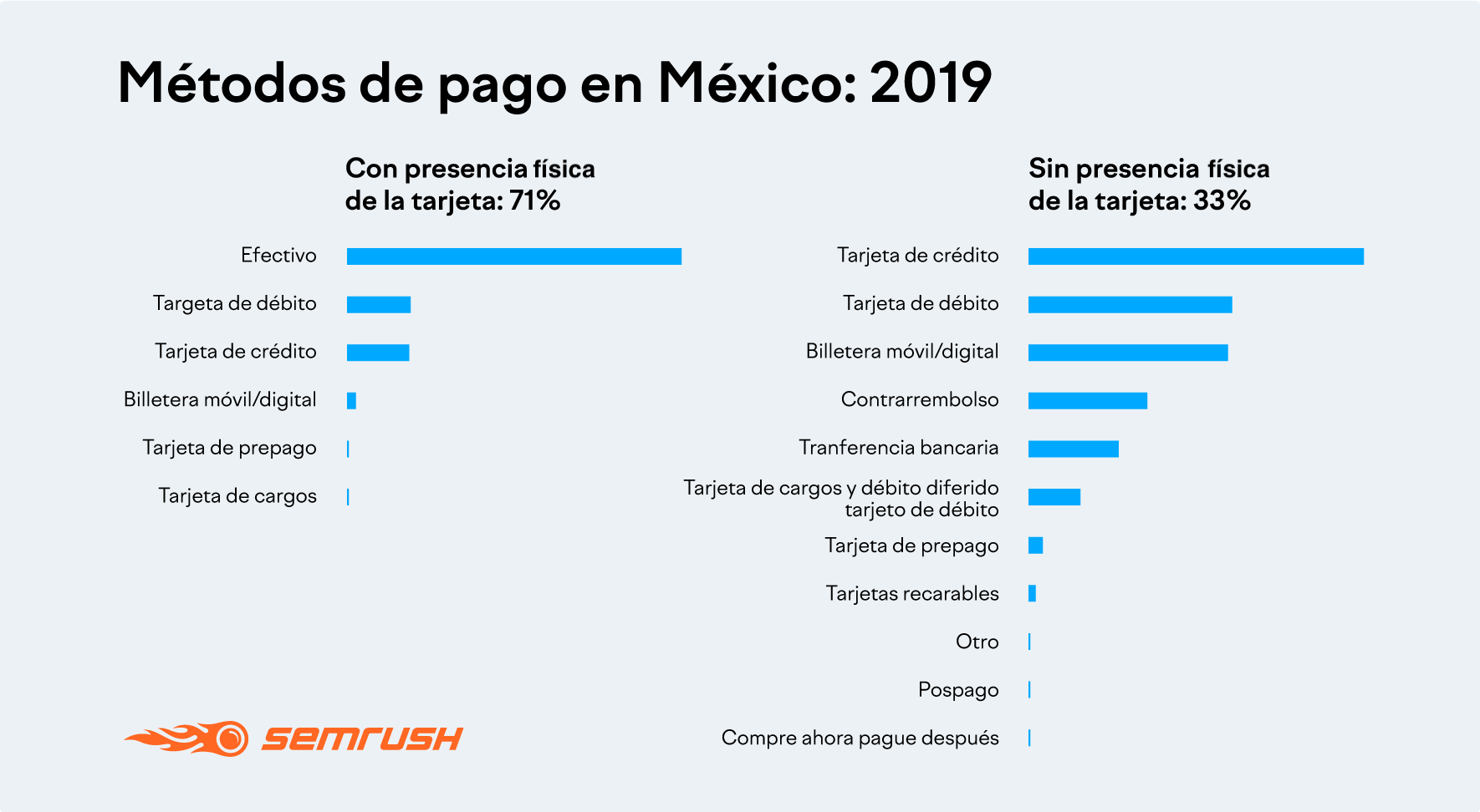 Y en latinoamérica existen diferentes tipos de pago. En México, un gran porcentaje de los consumidores prefiere pagar mediante tarjeta de crédito.
