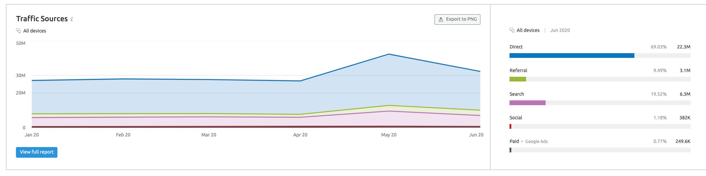Usa la herramienta de Análisis del tráfico de SEMrush para obtener acceso a información valiosa sobre los éxitos y fracasos de tus competidores.