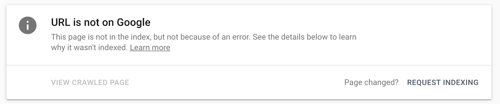 Que l'URL soit ou non dans l'index de Google, vous verrez un lien « Demander l'indexation » en bas de l'encadré.