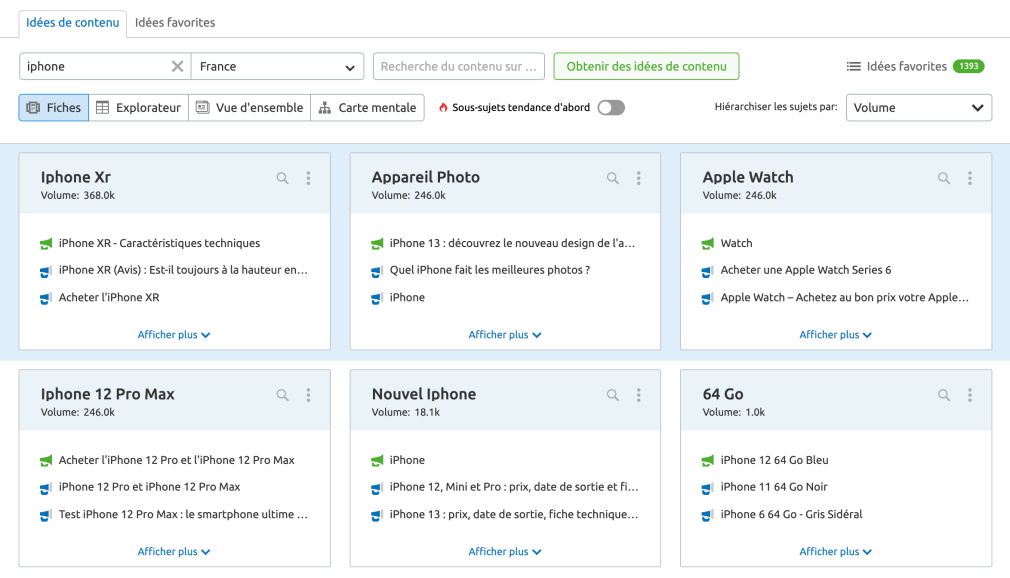 Topic Research est un outil simple mais efficace pour générer des sujets qui parlent à votre audience, ainsi que des sous-sujets et des idées à inclure dans votre contenu.