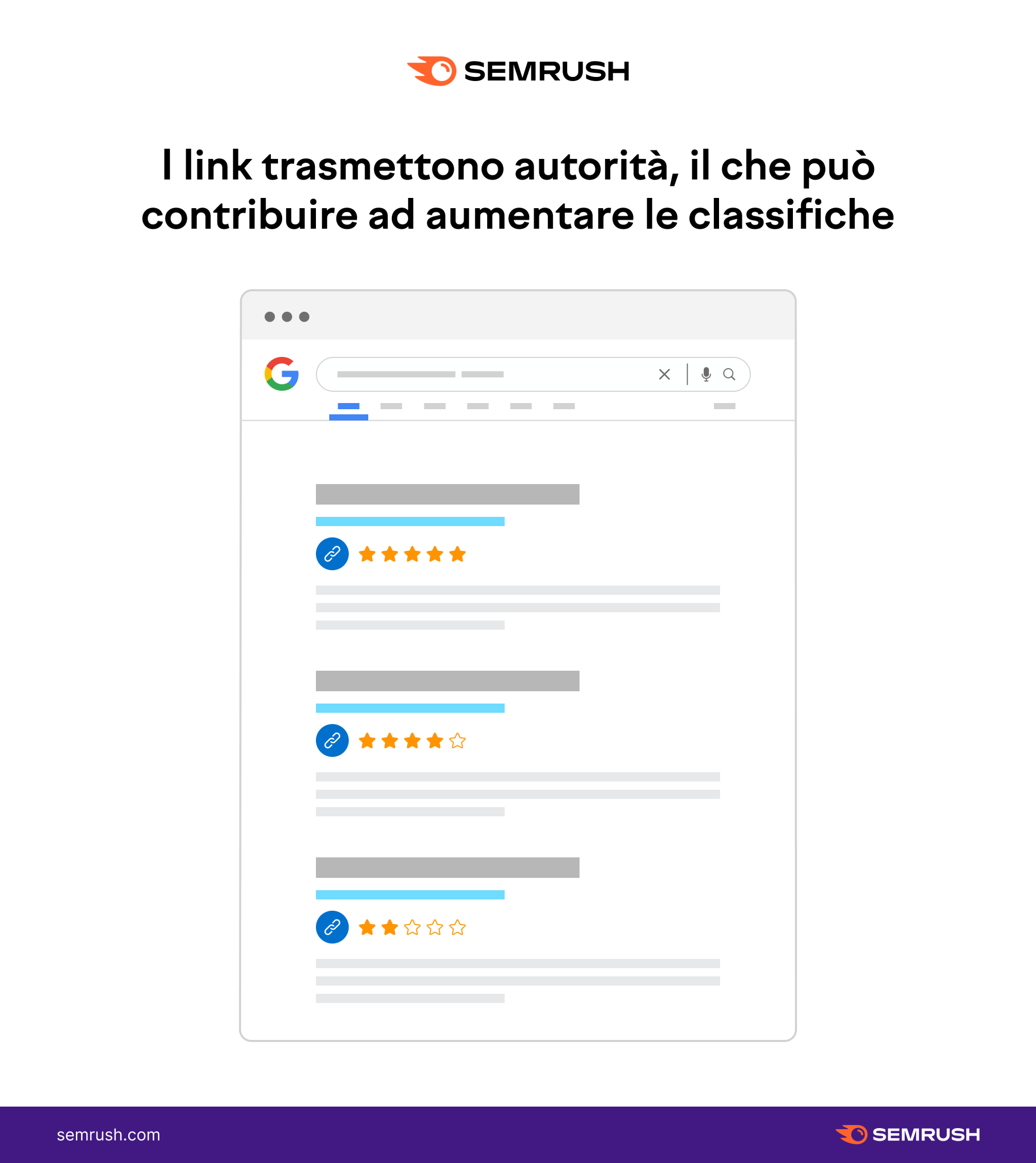 Pensa ai link come al modo in cui Google naviga nel Web. Un link proveniente da una fonte affidabile aiuterà il tuo contenuto a essere indicizzato più velocemente da Google.