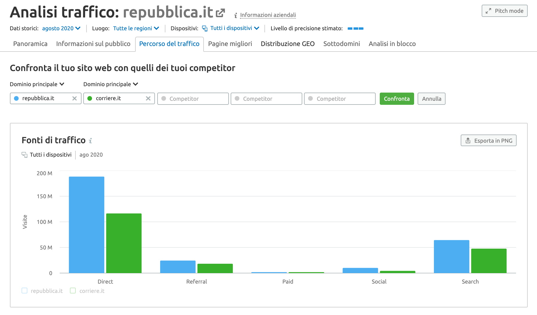 Il report Percorso del traffico di Analisi traffico rivela esattamente da dove i concorrenti ottengono il loro traffico.