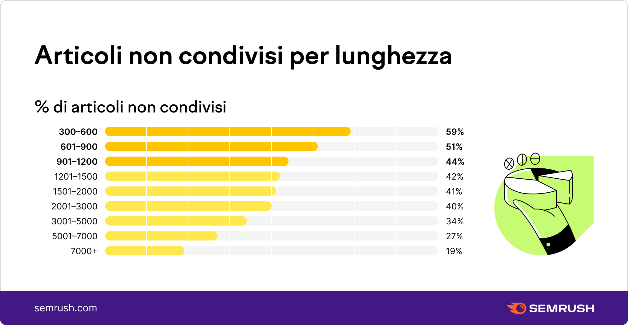 Punto chiave: Meno della metà degli articoli tra 300 e 900 parole vengono condivisi, mentre oltre l'80% degli articoli di oltre 7.000 parole ricevono condivisioni.
