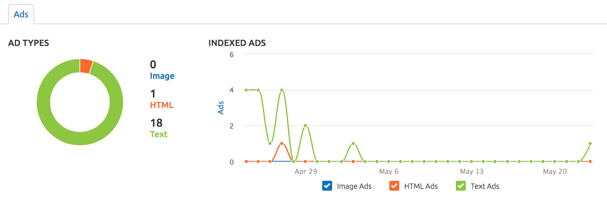 - De acordo com os dados da ferramenta Mídia Display da SEMrush do abril 2019 a palavra-chave “vestuário” foi 18 vezes mais promovida por anúncios de texto que dos outros tipos do anúncio (Fonte)