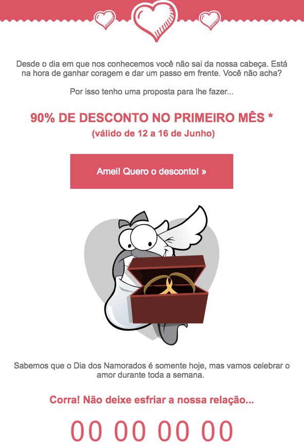 Exemplo de campanha com call to action nos primeiros 300px do email