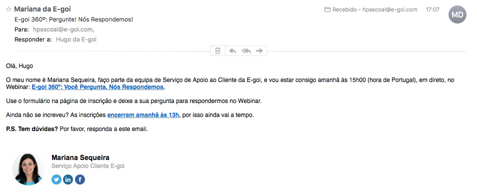 Repare que são centenas os emails que recebemos todos os dias, por isso, deve incluir sempre um elemento diferenciador dos demais emails.
