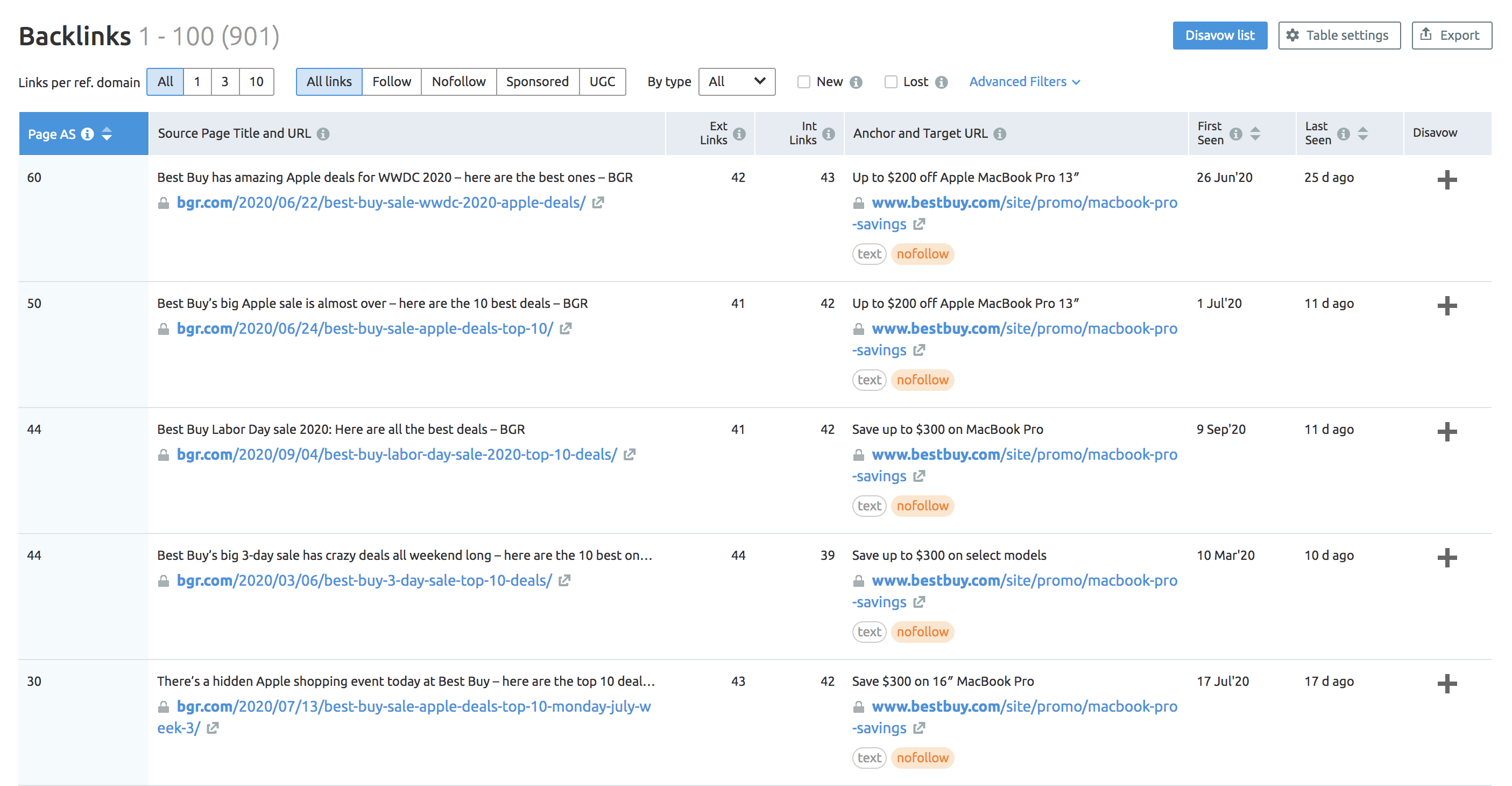 Em vez de analisar seu próprio domínio por meio da ferramenta Análises de backlinks, digite o domínio de seu concorrente para ter uma lista de todas as páginas com links que apontam para uma página 404.