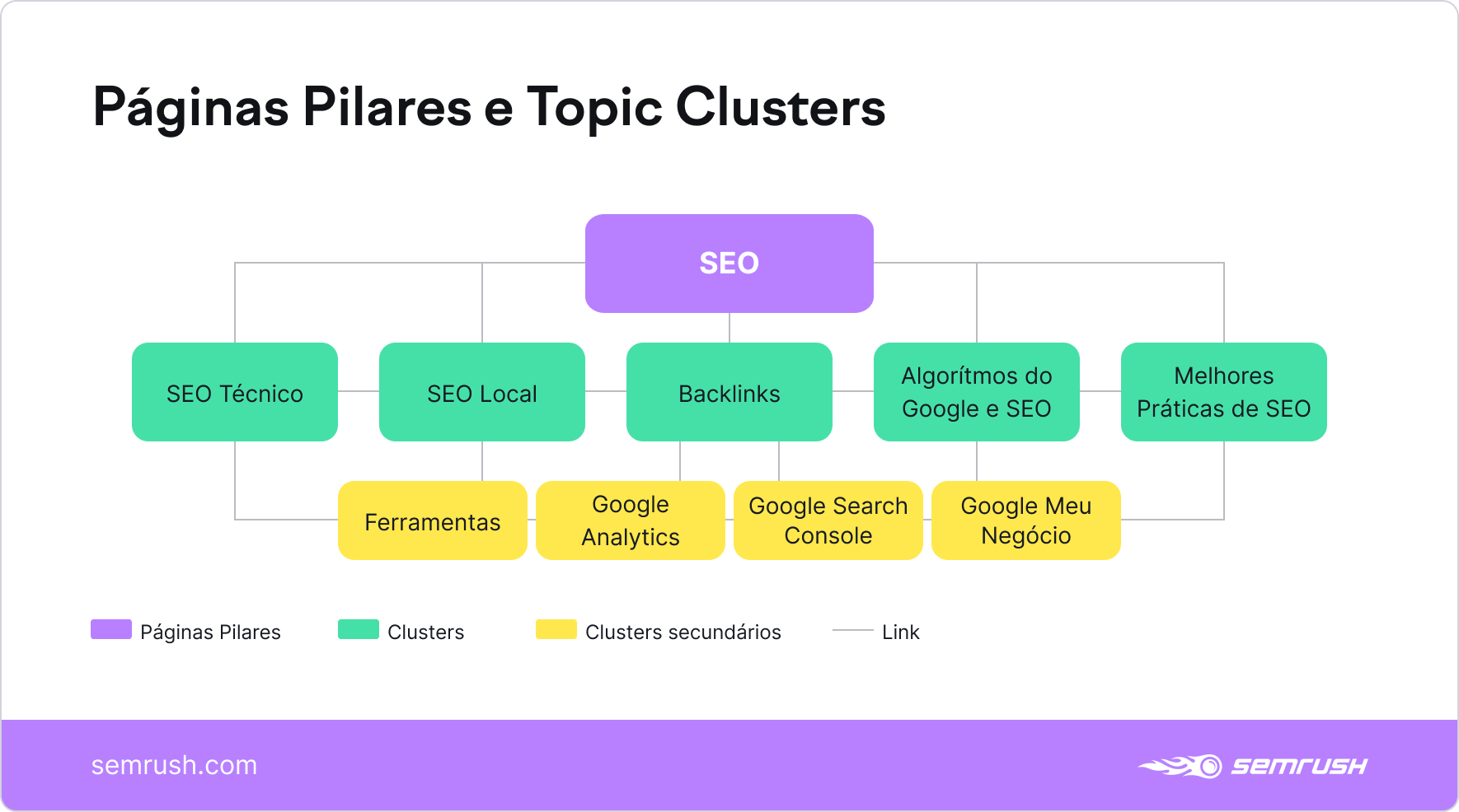 Já se foram os dias em que o objetivo principal era ranquear para palavras-chave únicas. Em 2020, você precisa pensar em como ranquear para tópicos, e construir topic clusters é uma ótima maneira de entrar nessa mentalidade.