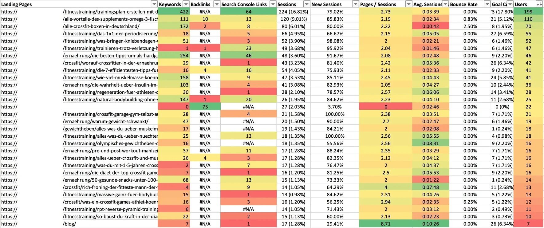 Você pode aprender como fazer a auditoria de conteúdo neste guia da Semrush, mas a ideia principal é de criar uma planilha que ajuda a identificar exatamente quais URLs não estão trazendo resultados.