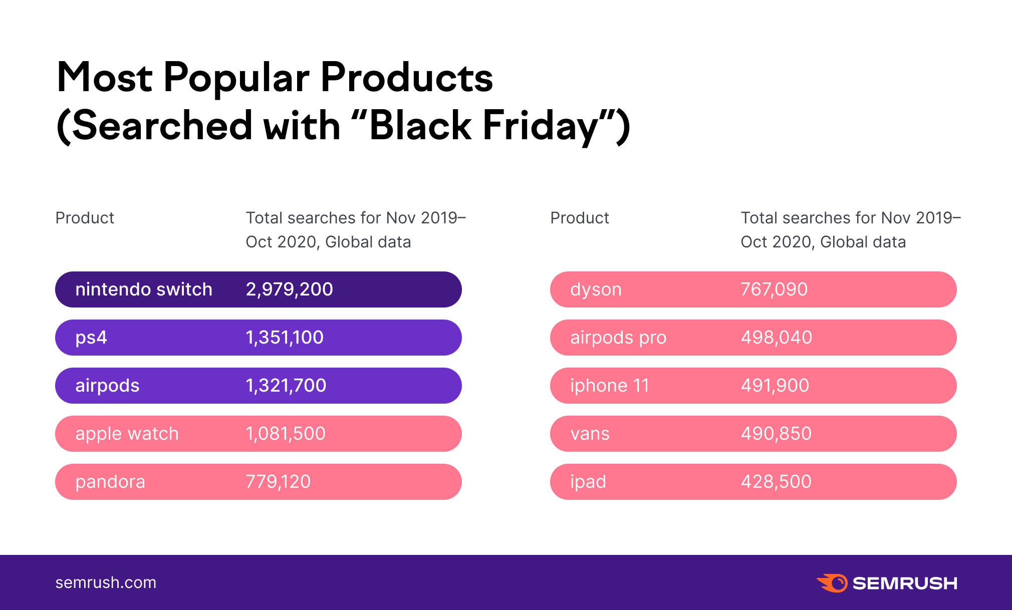 Until we get the data on Black Friday, we can rely on November 2019–October 2020 search trends for particular products.