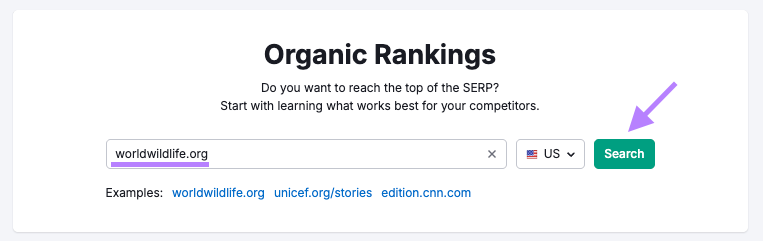 To use it, enter a website (either a competitor’s or your own), select your country, and click “Search.”